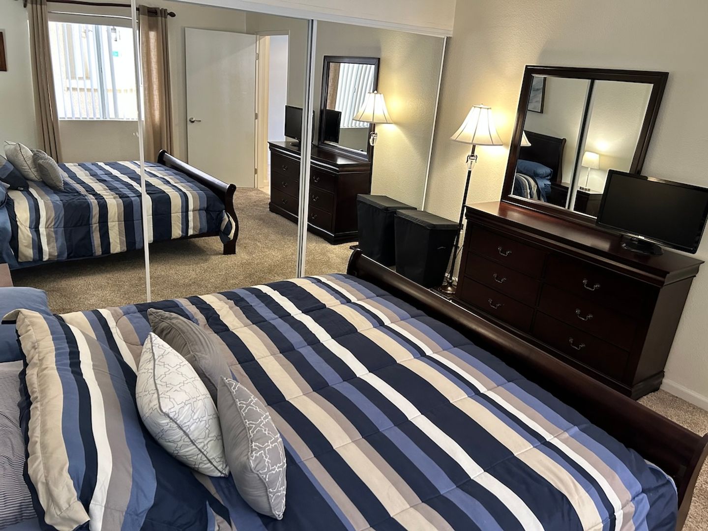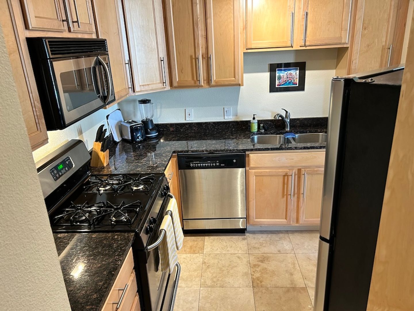 The kitchen is a chef’s dream with granite countertops and stainless steel appliances, perfect for preparing delicious meals or entertaining guests. Step out onto the balcony to take in breathtaking views of the iconic High-Roller and the MSG Sphere—an ideal backdrop for your morning coffee or evening relaxation.